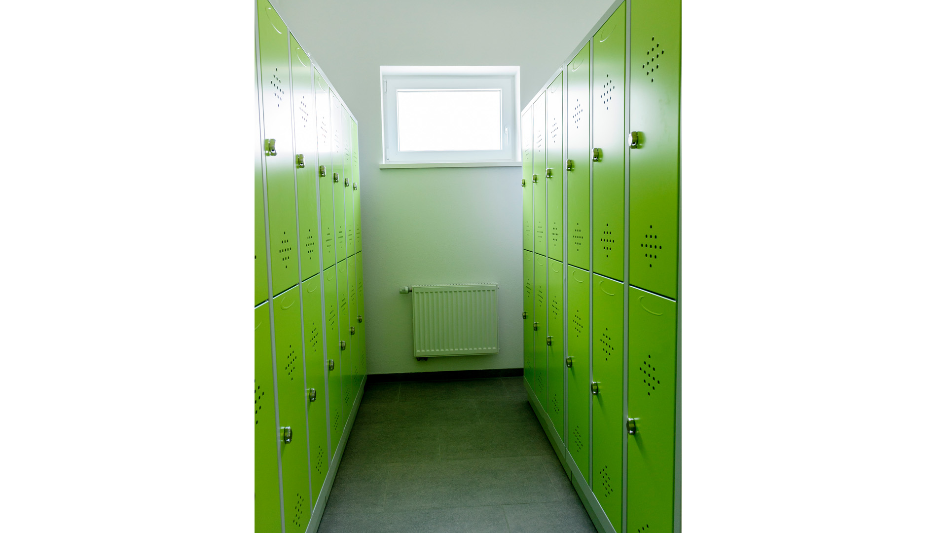 Da man eine kleineren Umkleideraum hat, entschied man sich für Doppelstockschränke. Mit diesen Schränken konnten wir das maximale an Fachanzahl herausholen.